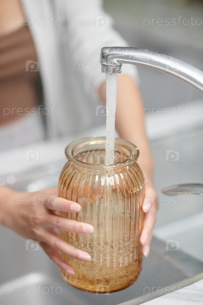 Женщина, наливающая воду в вазу