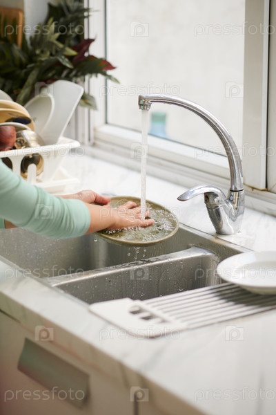 Помыть посуду под водопроводной водой
