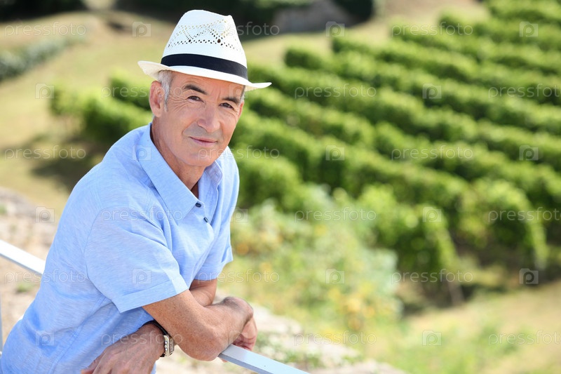 Пожилой мужчина на винограднике