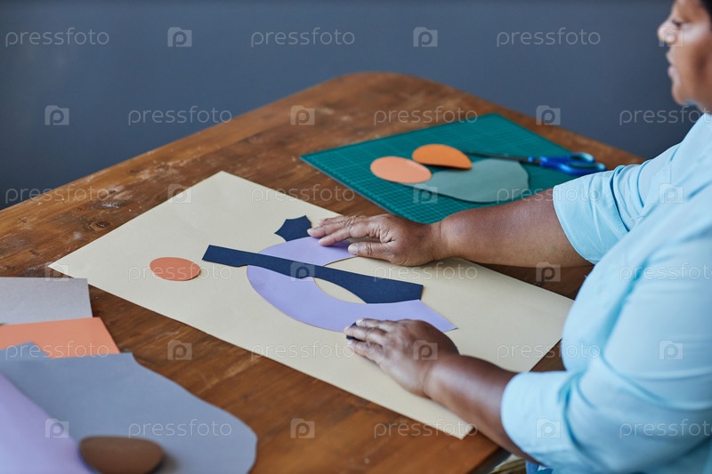 Руки зрелой афроамериканской ремесленницы, создающей композицию