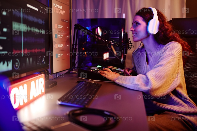 Женщина делает живой подкаст