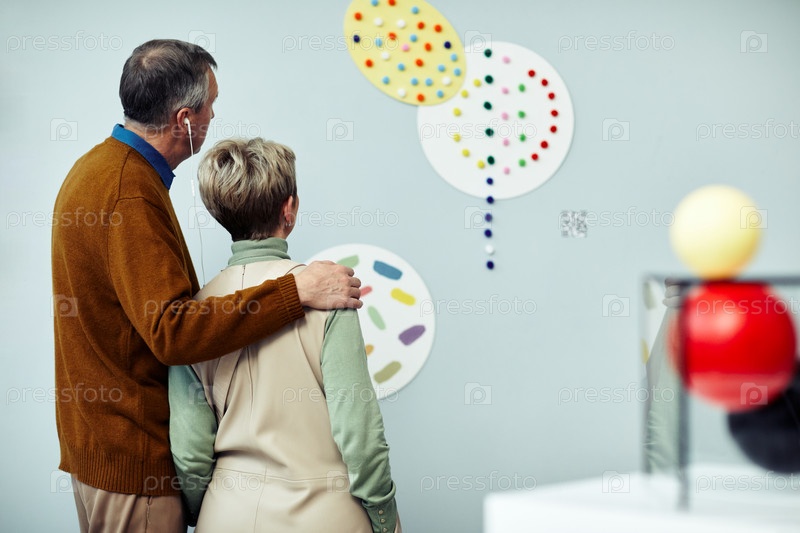 Старшая пара слушает аудиогид