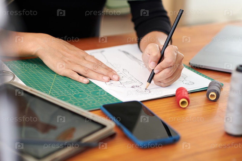 Модный дизайнер рисует эскиз