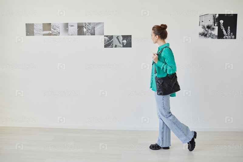 Молодая женщина, посещающая художественную галерею Minimal