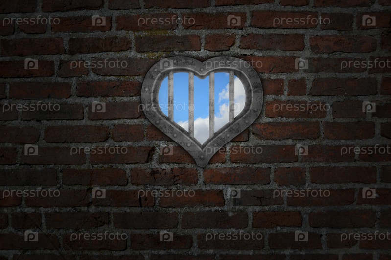 Тюремное окно в старой кирпичной стене - 3d иллюстрация