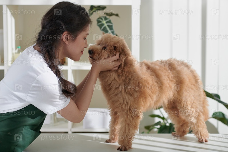 Груммер целует маленькую собаку