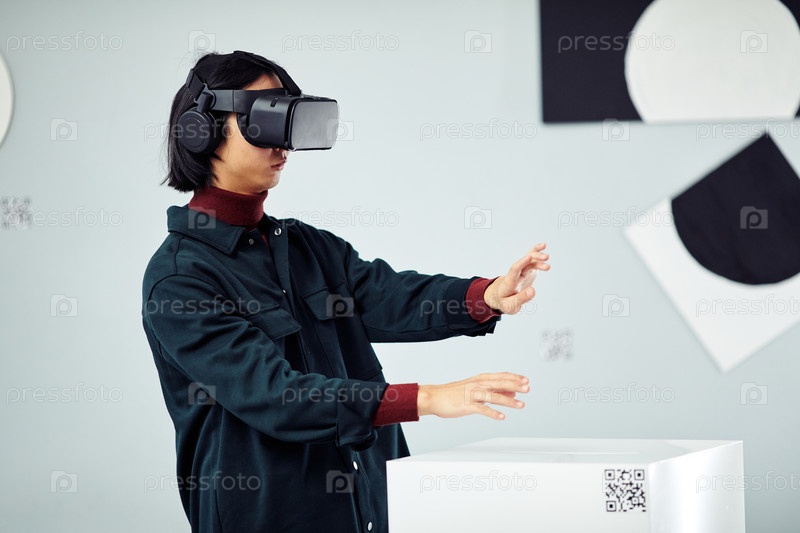 Парень, использующий VR-гарнитуру в азиатском музее