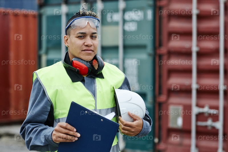 Работница смотрит на камеру снаружи