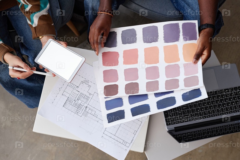 Дизайнеры изучают чертежи и шаблоны