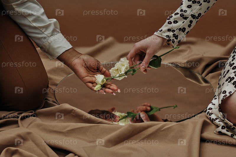 Женщина передает цветок своей девушке