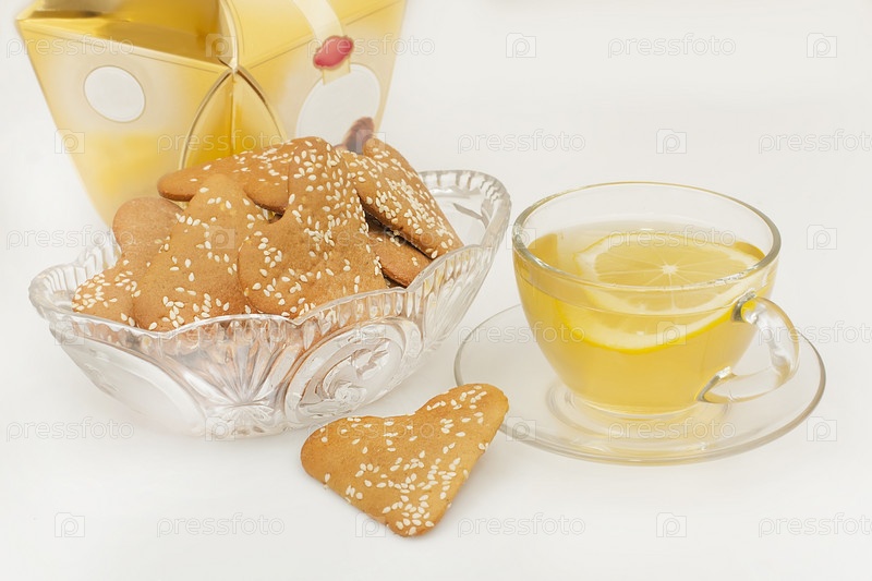 Имбирное печенье и чашка зеленого чая