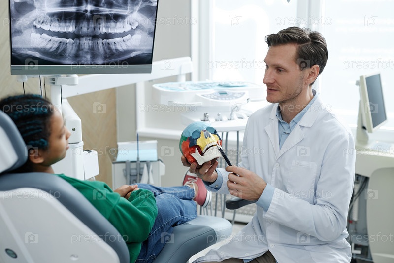 Стоматолог-мужчина, работающий с пациентом в медицинской клинике