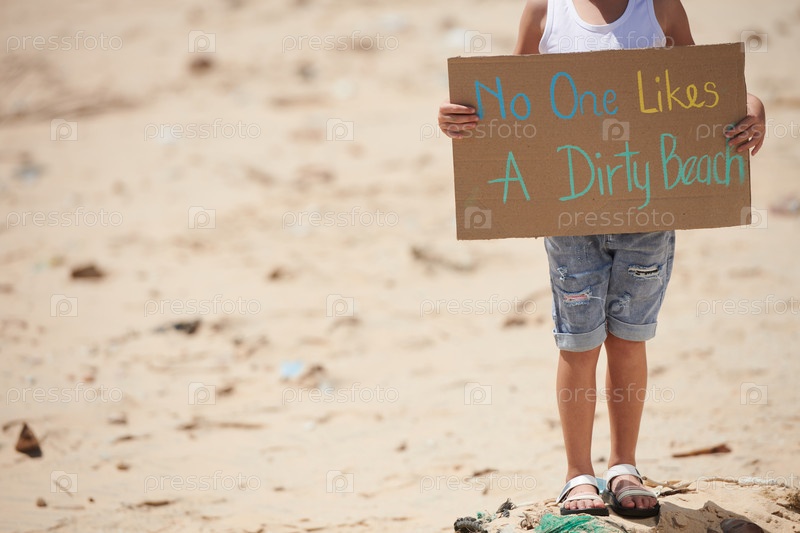 Девушка просит очистить пляж
