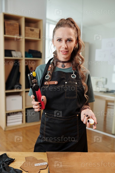 Женщина, работающая с кожаным отверстием для ударения