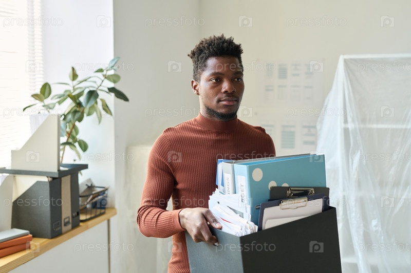 Бизнесмен, несущий коробку с офисными вещами