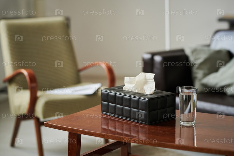 Ткани и стакан воды, готовящийся к психотерапии