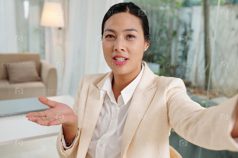 Бизнесвумен видео звонит коллеге по работе