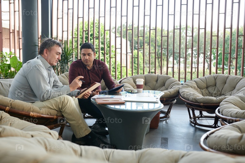 Коллеги обсуждают отчет о планшете