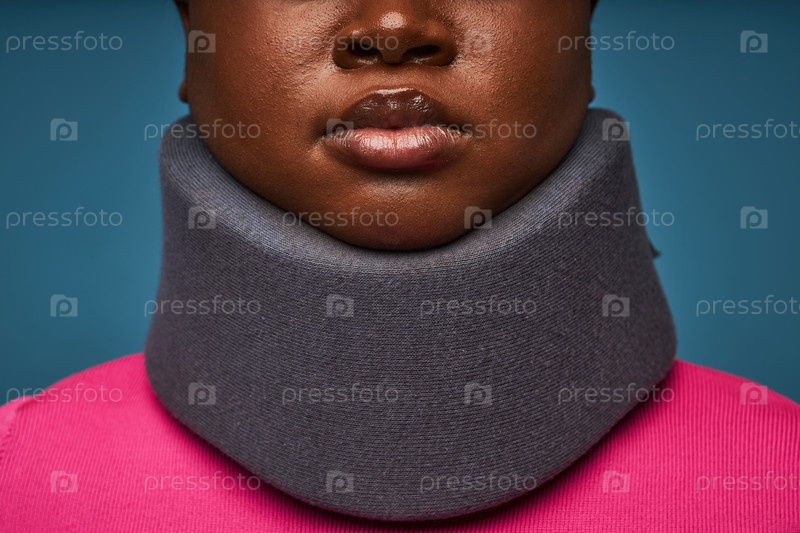 Непризнанная чернокожая женщина, носящая брекеты на шее