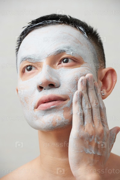 Стирая глиняную маску мужчина