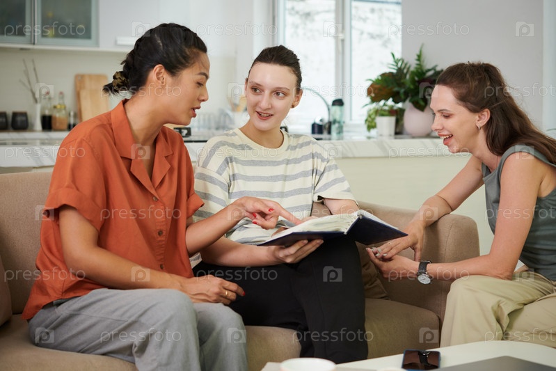 Друзья обсуждают старые фотографии