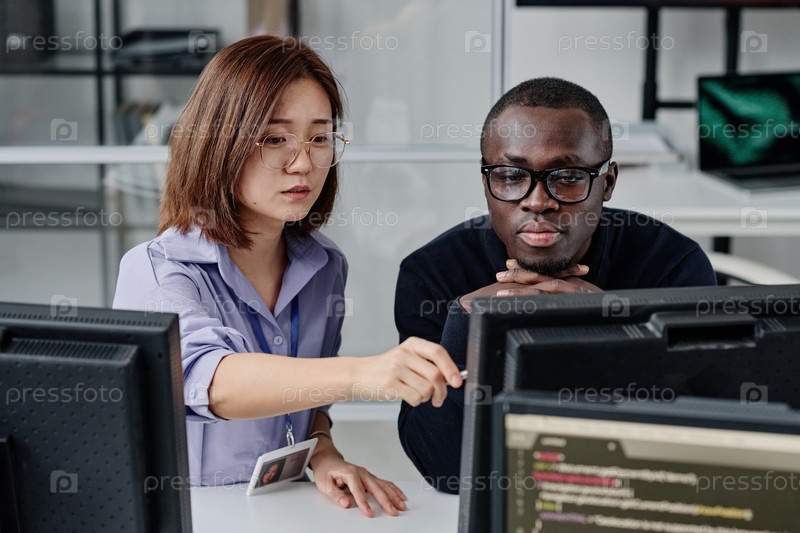 Пара разработчиков, работающих вместе над компьютером