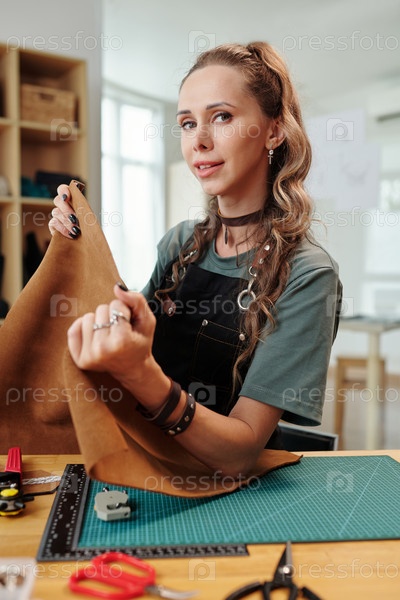 Женщина, работающая с кожей