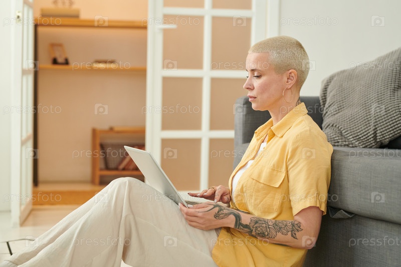 Женщина, просматривающая сеть на ноутбуке для покупок