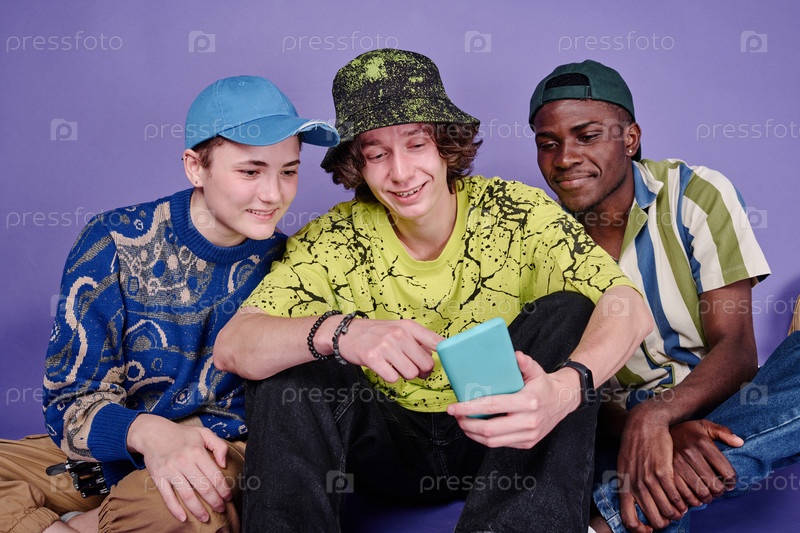 Группа подростков, использующих смартфон