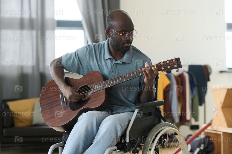 Инвалид наслаждается игрой на гитаре