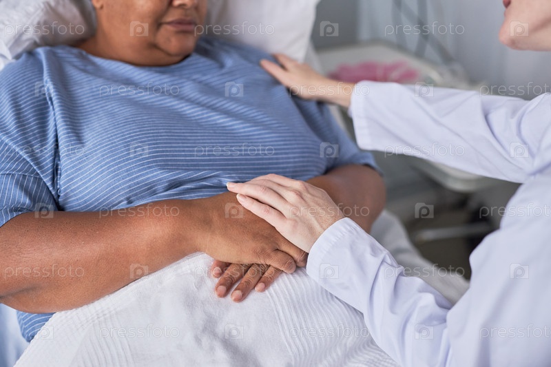 Близкий план заботливой молодой медсестры, поддерживающей пациентку