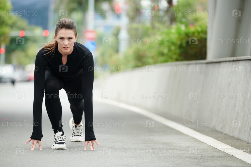Спортсменка, стоящая в стартовой позиции
