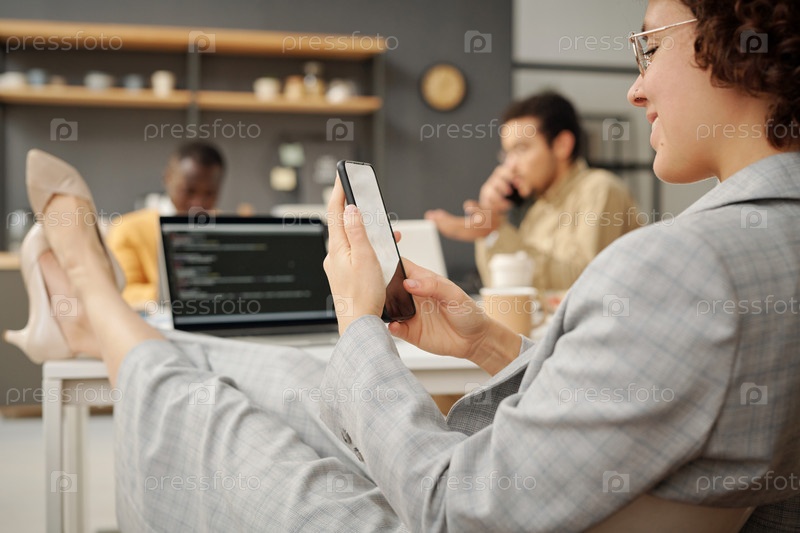 Деловая женщина, общающаяся онлайн с помощью своего смартфона