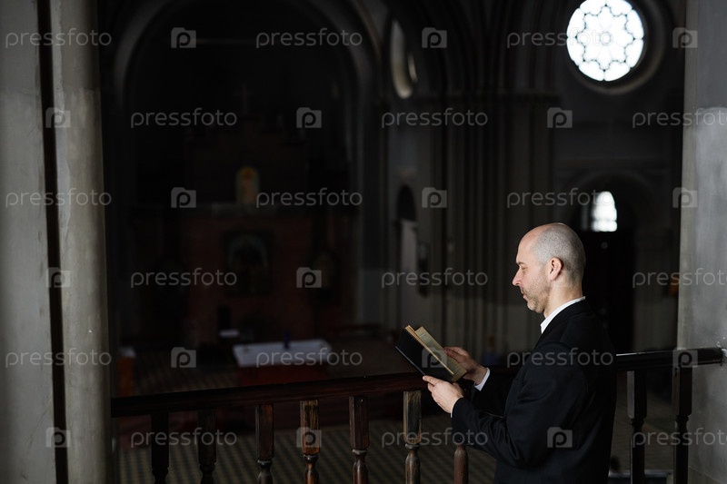 Священник читает Библию в церкви