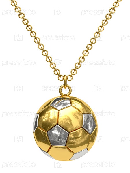 Золотое ожерелье в форме футбольного мяча на цепи, изолированное на белом цвете, 3D
