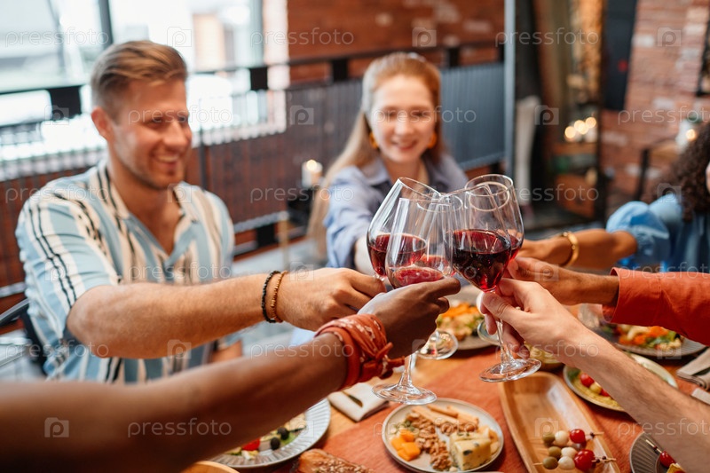 Друзья празднуют на ужине