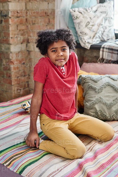 Мальчик сидит на диване дома