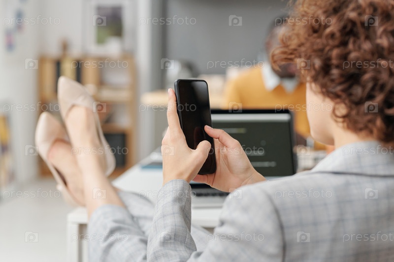 Деловая женщина, использующая свой смартфон в офисе