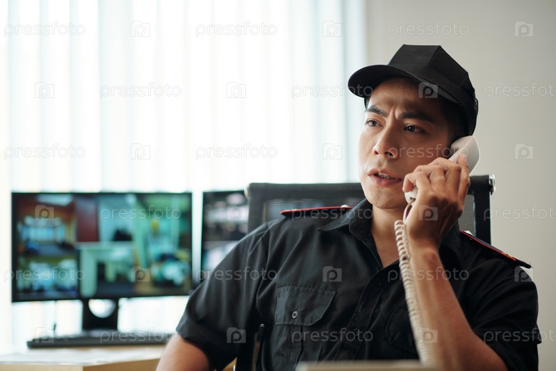 Охранник разговаривает по телефону
