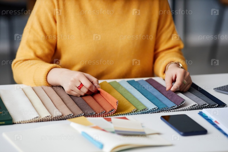 Дизайнер выбирает цвет на палитре