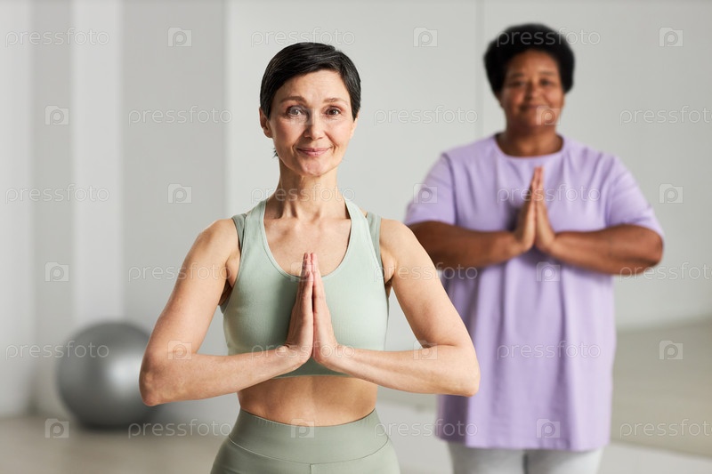 Женщины, практикующие йогу в классе