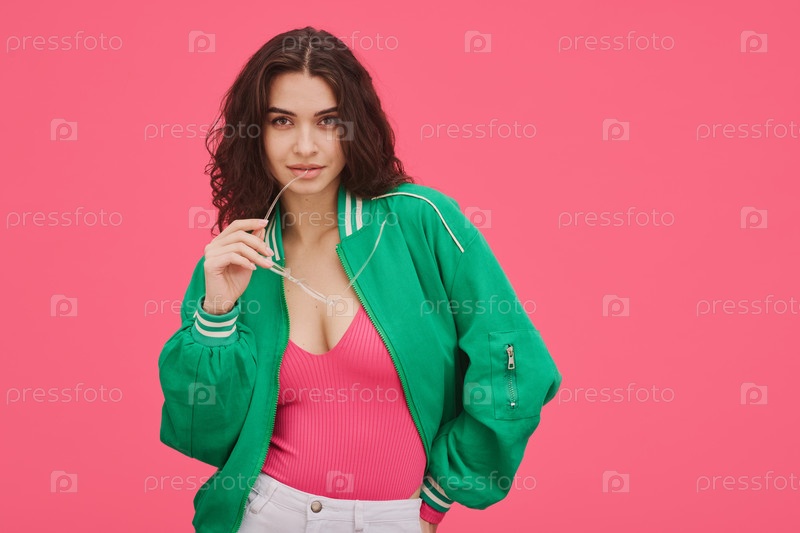 Красивая женщина в модном куртке