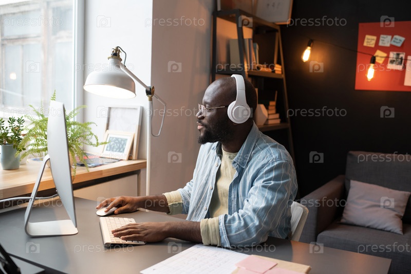 Африканский мужчина, работающий на компьютере