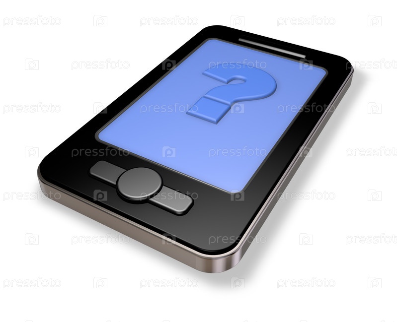 Вопросительный знак на смартфоне - 3D иллюстрация