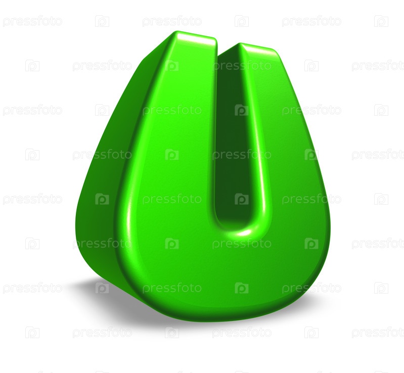 Зеленая буква u на белом фоне - 3D иллюстрация