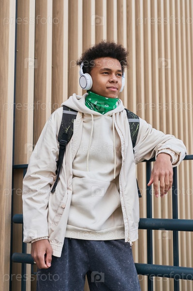 Подросток слушает музыку в наушниках