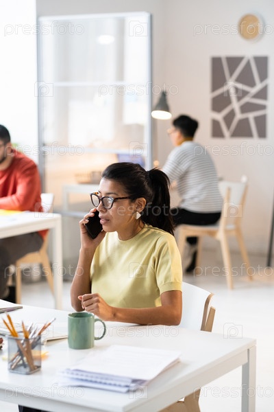 Секретарь разговаривает по телефону в офисе