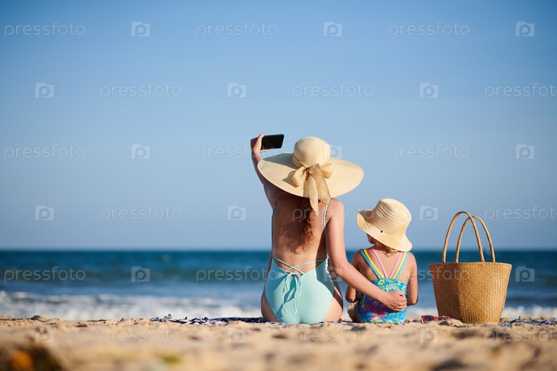 Женщина фотографирует с дочерью