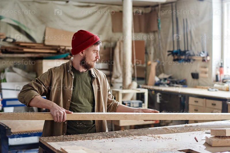 Молодой человек, работающий в лесозаводе