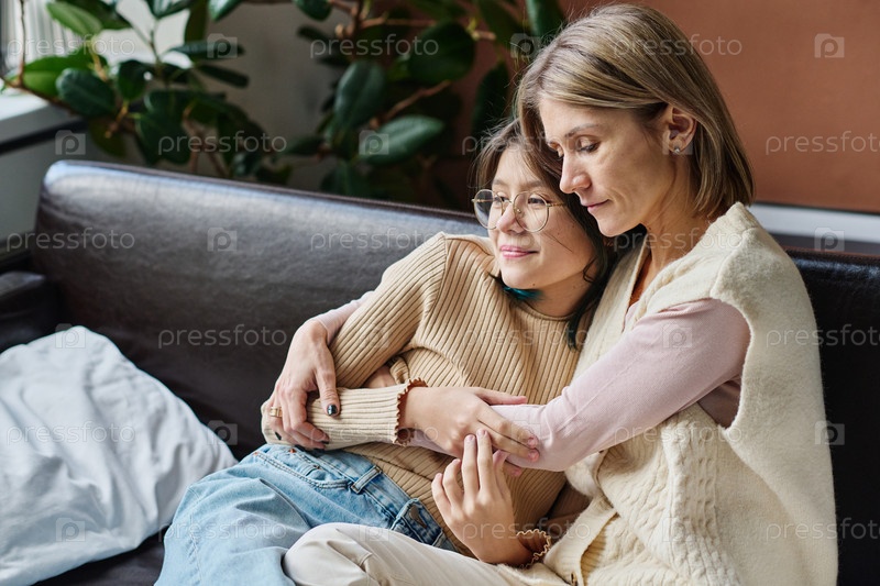 Мать обнимает своего ребенка-подростка